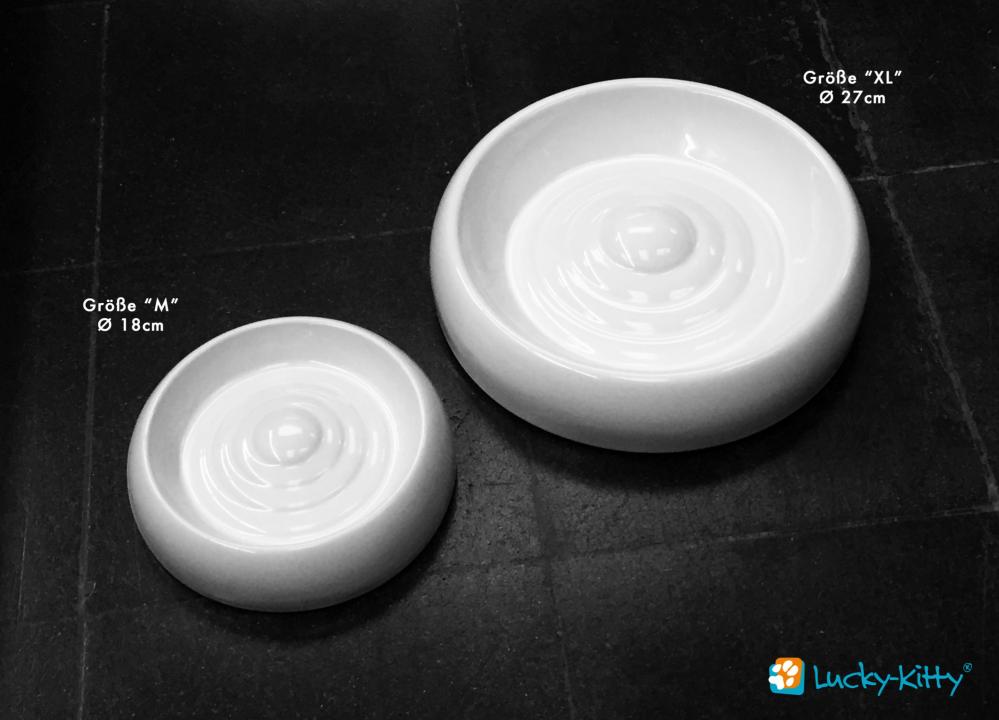 Lucky-kitty kattmatskål är en funktionell matskål designad helt utifrån kattens behov. Den passar bra både för torrfoder och våtfoder och storlekan passar för små kattungar eller en ensam vuxen katt (välj storlek Large för vuxna katter som vill samäta).