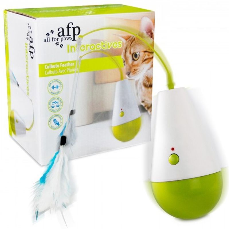 Culbuto är en fiffig kattleksak som snurrar, spinner och viftar på sin fjäder. Din katt kommer inte att kunna motstå att gå fram för att ge den en och annan tass! En fjärrkontroll medföljer så att du kan leka tillsammans med din katt och överaska den genom att stanna och sätta igång Culbuton.