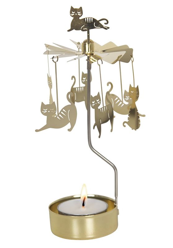Klassiskt änglaspel som är jättefint att ha framme året runt! Tänd ett värmeljus och änglaspelet börjat snurra och de små blanka katterna är fina att titta på.