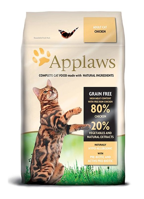 Applaws är ett foder helt utan konstgjorda färgämnen och konserveringsmedel och den innehåller heller inget spannmål! Applaws tillverkas med grundtanken om katten som ett köttätande djur och försöker i möjligaste mån att efterlikna en naturlig kost. Applaws innehåller inget tillsatt taurin eftersom det finns tillräckligt i köttmängden i detta foder.
