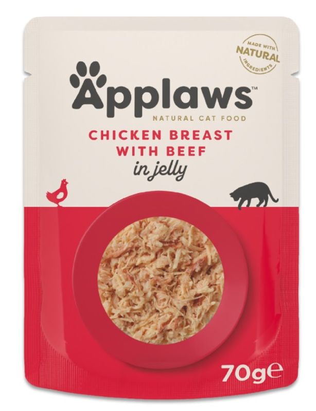 Köttbitar i gelé med kyckling och oxkött. Applaws våtfoder finns i flera smakkombinationer som kommer att tilltala även den mest kräsna av katter. Kattmat helt fri från gluten!