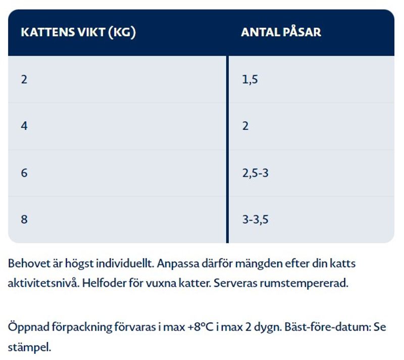 Bozita Senior är kattmat framtaget med den äldre kattens lite lägre energibehov i åtanke. Fodret passar därför även jättebra för en kastrerad katt som lätt lägger på sig onödig extra vikt. (Obs! Har du en seniorkatt som är mager och har svårt att behålla vikt så rekommenderar vi inte detta foder).