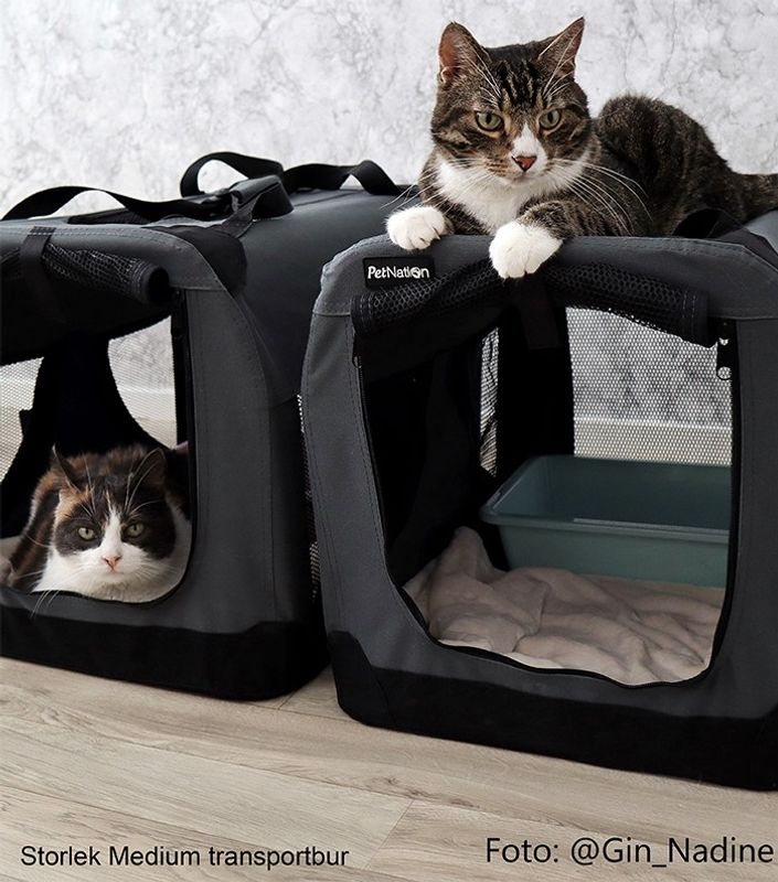 Bästa transportburarna vi har haft, har 2st i storlek Medium (Se bilder). Min ena katt Nadine blir väldigt stressad under bilresor, vilket hon såklart även blir i denna men eftersom den är större så kan hon ligga bekvämt och även vända sej utan problem och det som är så bra är att det även får plats en liten kattlåda för längre resor. Vi har även haft dom framme i ett separat rum i 4 månader och min andra katt Gin sover i någon av dom varje natt.