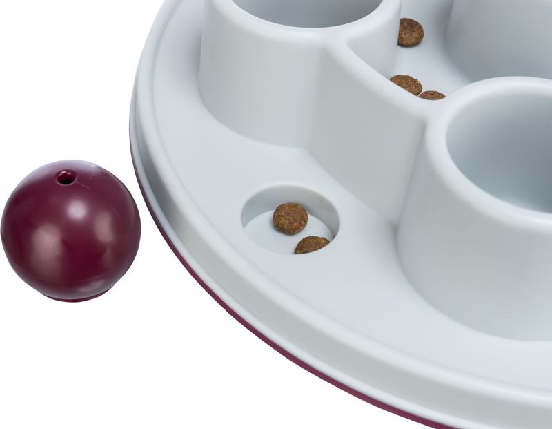 Fyll brädet med torrfoder eller kattgodis och ge din katt lite extra aktivering i sin vardag.