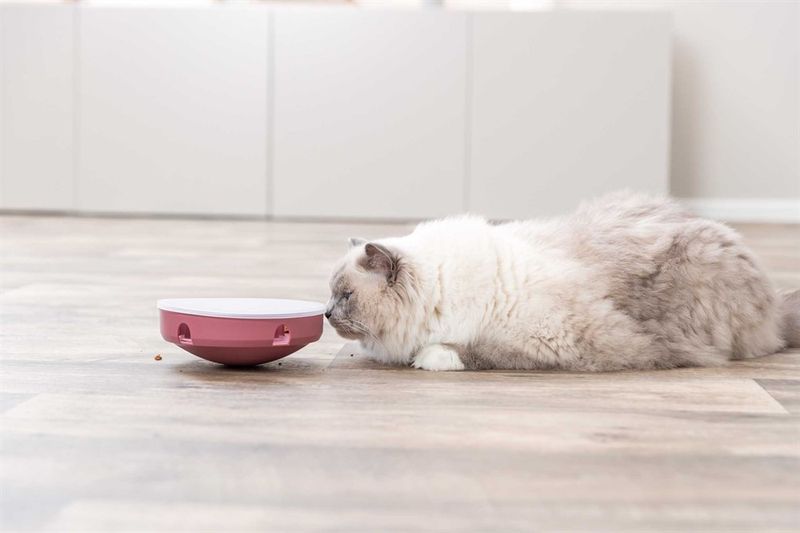 Plocka gärna bort kattens vanliga matskål helt och hållet och servera den dagliga portionen torrfoder i denna aktiveringsmatskål.