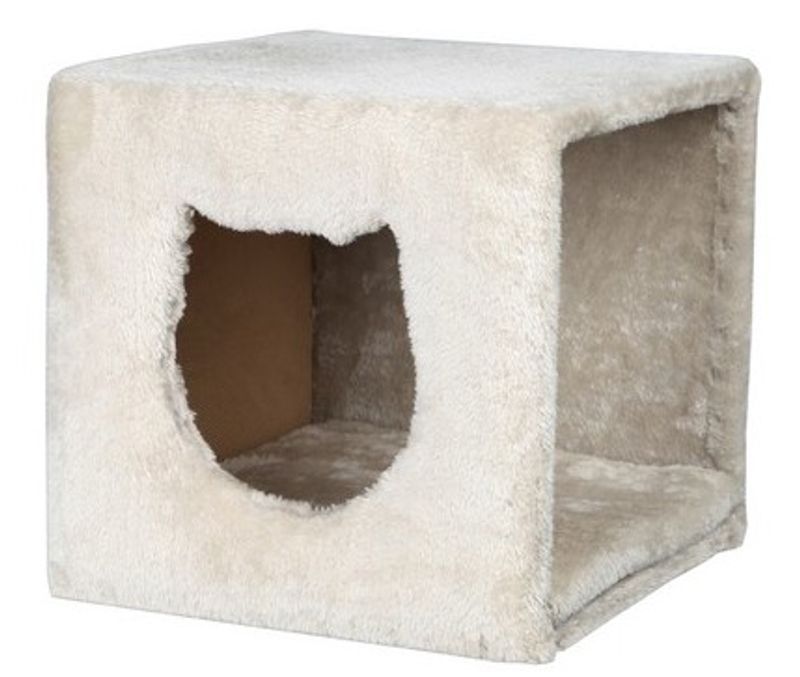 Cat cave är tillverkad med ett gråvit plyschtyg och har en lös dyna i botten som är vändbar och går att tvätta i maskin på skontvätt 30 °C. (Innerkudden bör handtvättas).