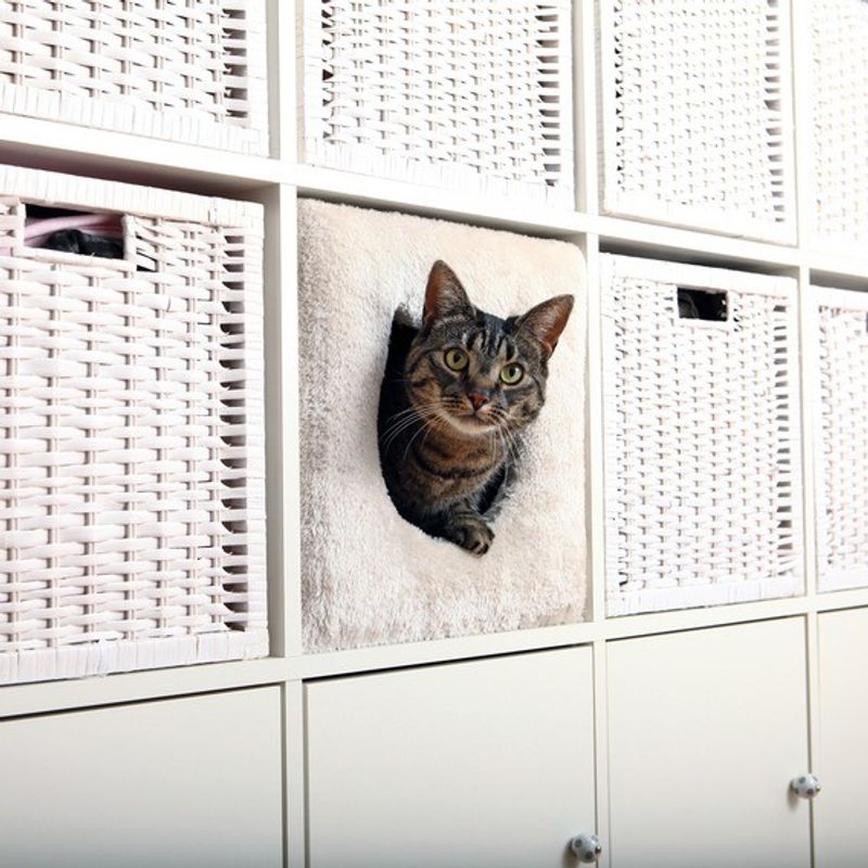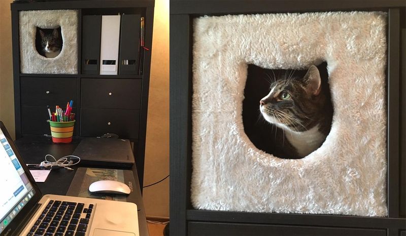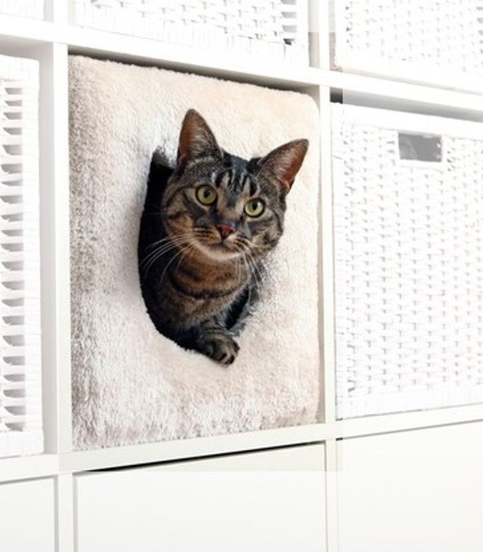 Funktionell kattgömma som passar till IKEAs möbler Expedit och Kallax. Cat cave kan stå själv på golvet eller på en byrå som en mysig sovplats, men passar även i IKEAs välanvända möbler.