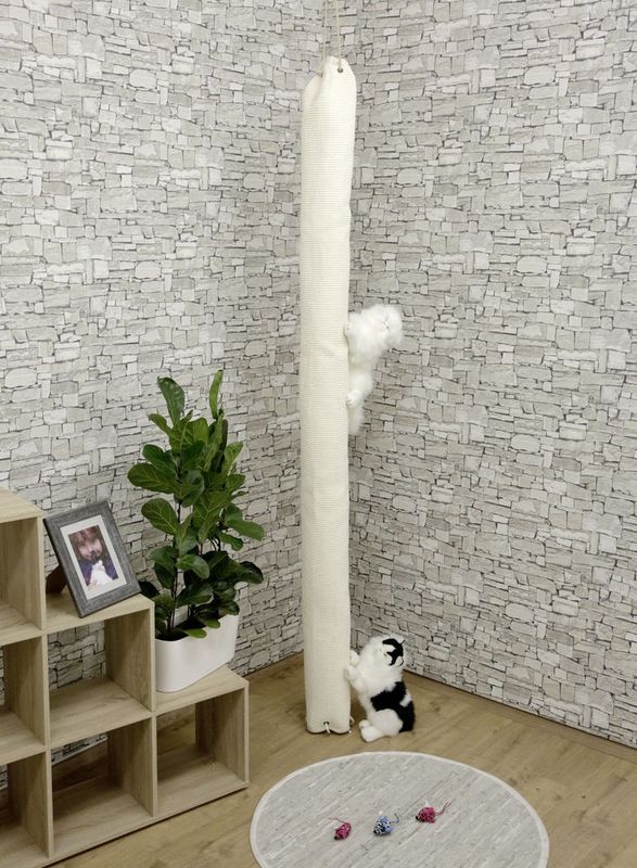 Tillverkad av högkvalitativ sisalväv med vaddering inuti. Längden på klöspelaren är något justerbar med repen upptill.
