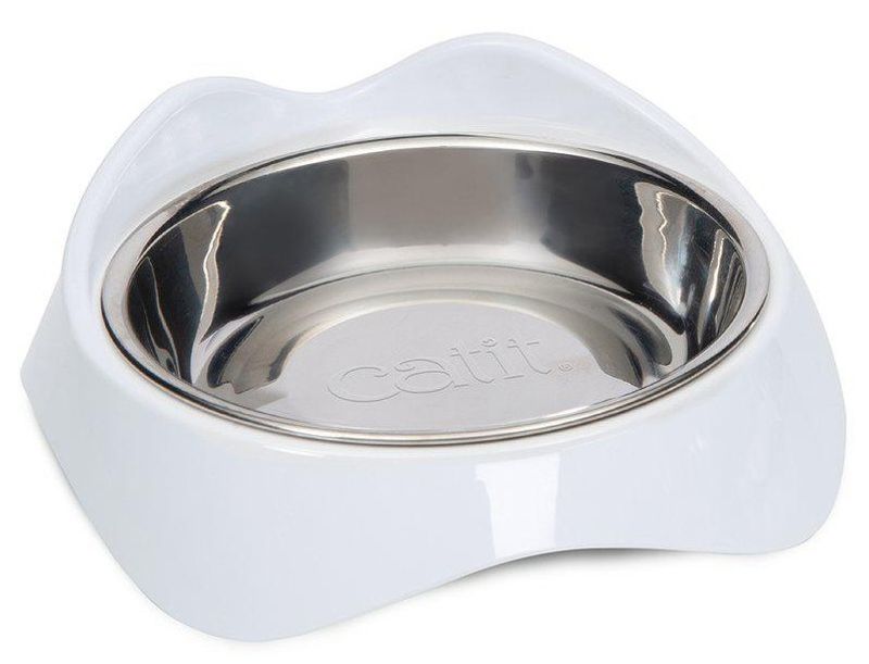 Kattmatskål i den populära serien Pixi från varumärket CatIt, en vit matskål med rostfria insatsskålar med låg kant. Till varje matskål hör det 2 st insatser - så att du lätt kan köra 1 st i diskmaskinen medan katten äter ur den andra.