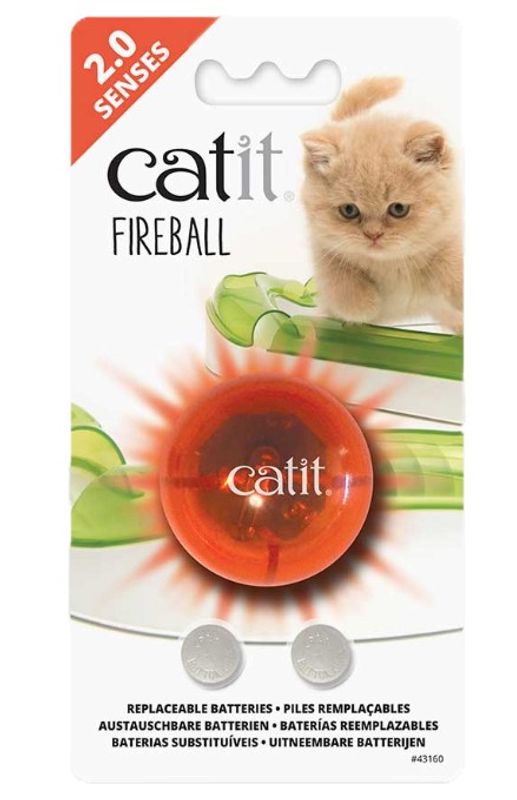 Nytt med Fireball är att den blinkar i ett rött sken när katten "tassar till" bollen, samt att den går att skruva isär för att byta batterier.