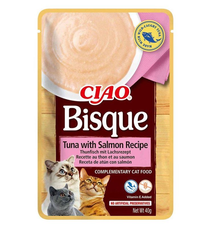Churu Bisque, i praktiska portionspåsar, med tonfisk och lax - erbjuder en lyxig och krämig puré. Gillar din kisse Churus klassiska creme kattgodisar så gillar de definitivt även Churu Bisque. Denna delikatess har en lite tjockare krämig konsistens, som är perfekt som en extra godsak för din katt. Churu Bisque är ett kompletteringsfoder som ger din katt en extra smakupplevelse.