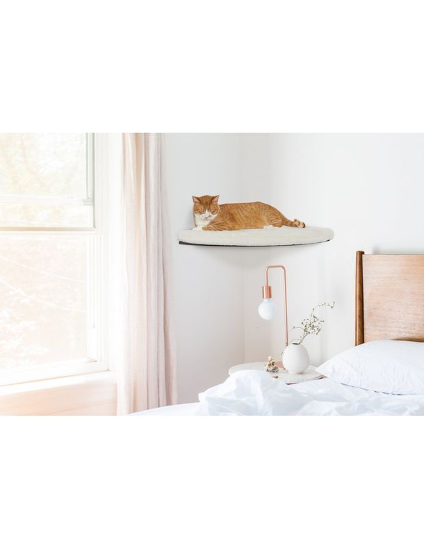 Tack vare att hyllan är vägghängd och kan placeras i hörn så kan du enkelt skapa en plats åt din katt även i mindre hem med begränsat utrymme. Hörnhyllan går att använda antingen som ensam hylla eller kombinera med någon annan hylla för att skapa en stilren, rolig och snygg klättervägg åt din katt.