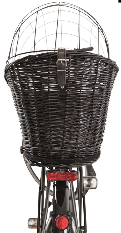 En mjuk dyna i botten av korgen medföljer denna cykelkorg och fäste finns för pakethållaren undertill. Cykelkorgen är svart och tillverkad av pil, gallret är i galvaniserad järntråd, ett mycket hållbart material.