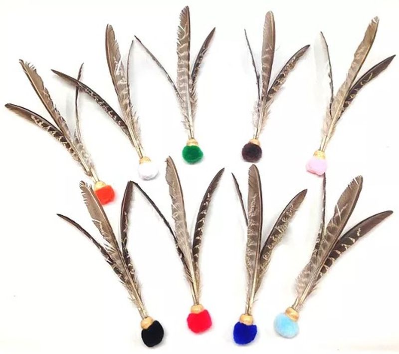 Kitty Kopter är handgjorda och tillverkas i USA av fasanfjädrar. Levereras i blandade färger.