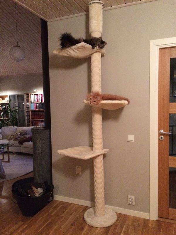 Många katter har behov av att klättra högt upp för att sitta och spana, eller sova på hög höjd och detta tillgodoser detta klösträd. Hängmattorna går att variera i vridning så att trädet bl a kan placeras i ett hörn.