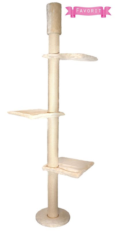 Många katter har behov av att klättra högt upp för att sitta och spana, eller sova på hög höjd och detta tillgodoser detta klösträd. Hängmattorna går att variera i vridning så att trädet bl a kan placeras i ett hörn.
