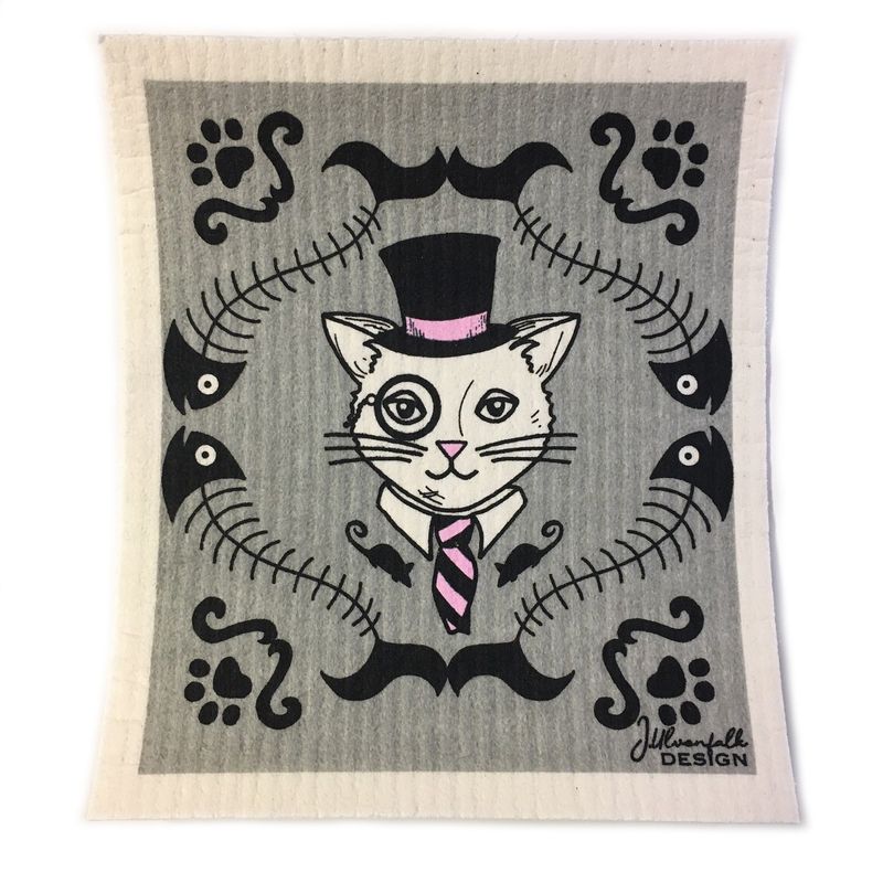 En helt fantastiskt fin disktrasa, med motivet Mister: en fin kattherre med hatt och monockel på grå bakgrund. Designat av vår egen Jenni Ulvenfalk.