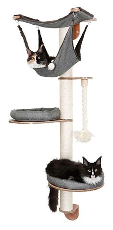 Observera att du själv måste förankra klösträdet på ett säkert sätt med rätt skruv+plugg i rätt väggmaterial så att klösträdet klarar vikten av din/dina katter.