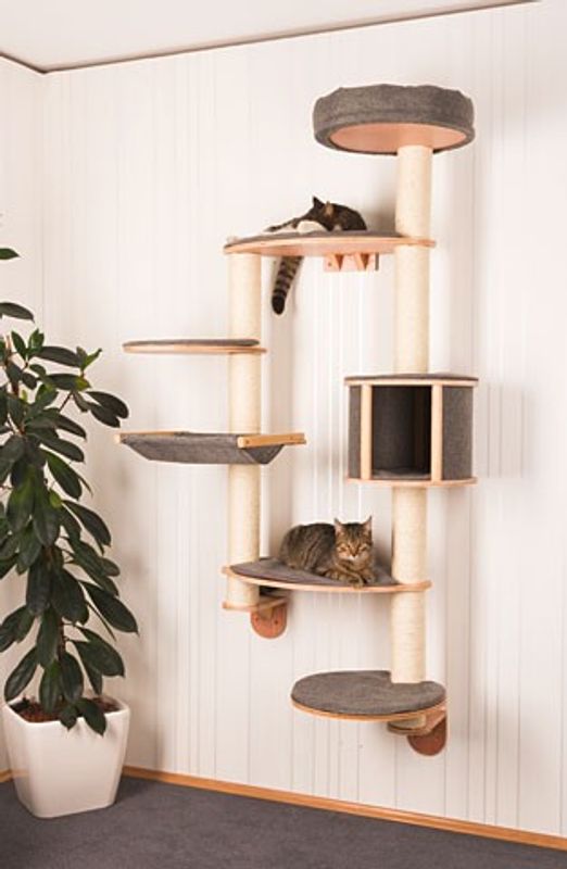 Observera att du själv måste förankra väggfästet på ett säkert sätt med rätt fästen i rätt väggmaterial så att klösträdet klarar vikten av din/dina katter. Om du är osäker på detta så ta hjälp av en lokal bygg-handel för råd.