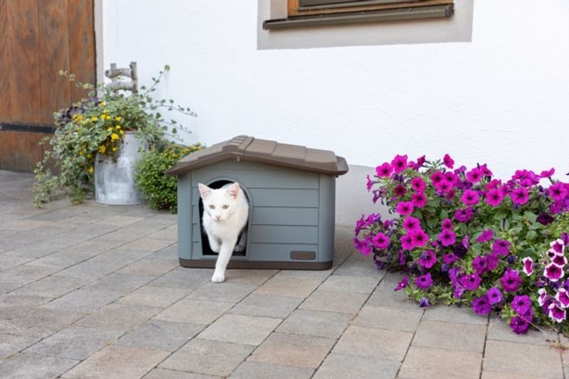 Katthus Paola kan användas både inomhus och utomhus. Den är lämplig som väderskydd för 1 katt. Den kan även passa för 2 katter, om de är bra kompisar och vill tränga ihop sig lite.