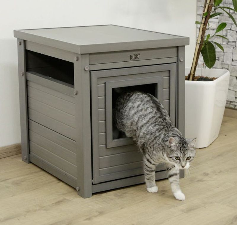 Obs! Eftersom ingångshålet är lite högre upp på denna möbel så passar den ej äldre katter som kan ha artros och behöver en lägre ingång, eller en helt öppen kattlåda med lägre kant framtill.