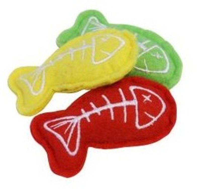 3-pack med härliga kattleksaker; färgglada fiskar i filt med brodyr på ena sidan. "Catch of the Day" har kattmynta i fyllningen och storleken och vikten är helt perfekt för katten eller kattungen som gärna bär omkring sitt byte efter fångsten.