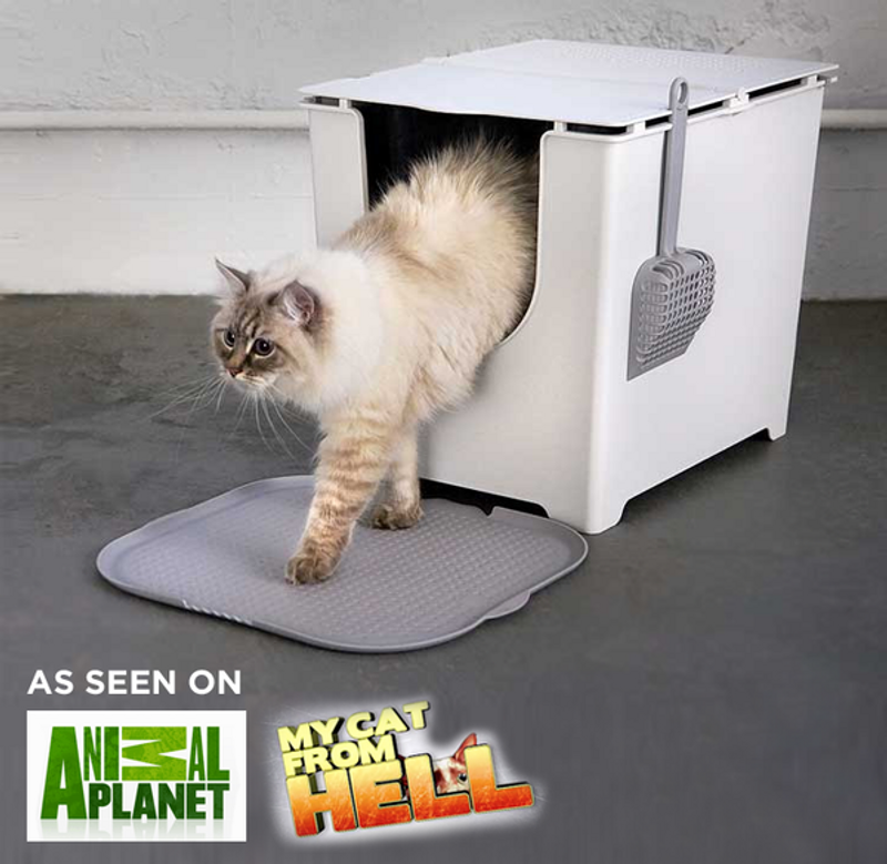 Flip Litter Box är helgjuten i ett stycke, vilket ger en helt tät kattlåda som inte kan läcka om du har en katt som står upp och kissar.