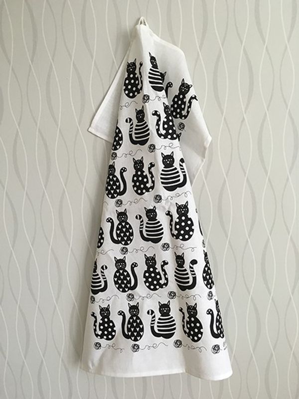 Gåvoset kattmotiv, kökshandduk + disktrasa
