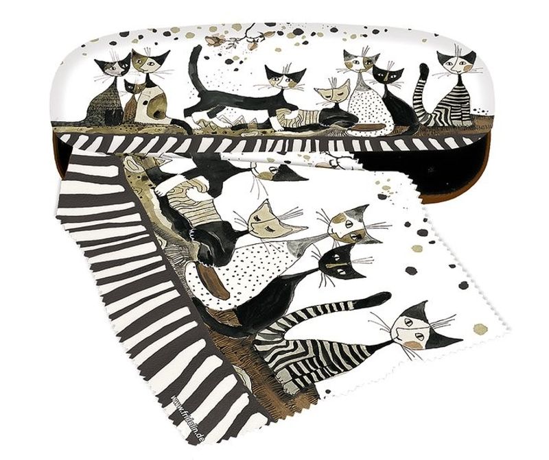 Hård etui med en mjuk utsida, som stängs av sig själv den sista vägen när man stänger den. En fin putsduk med matchande motiv av mikrofiber medföljer inuti glasögonfodralet.