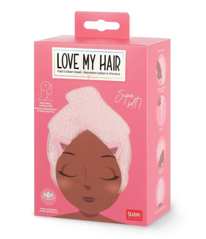En underbart mjuk och superabsorberande handduksturban som är mysig att ha efter duschen. Torka håret enkelt, utan friss och utan hårtork. En hårturban är sydd som en lång huva, och har en knapp i nacken där du enkelt fäster änden efter att du svept in det blöta håret. Tillverkad i microfleece.