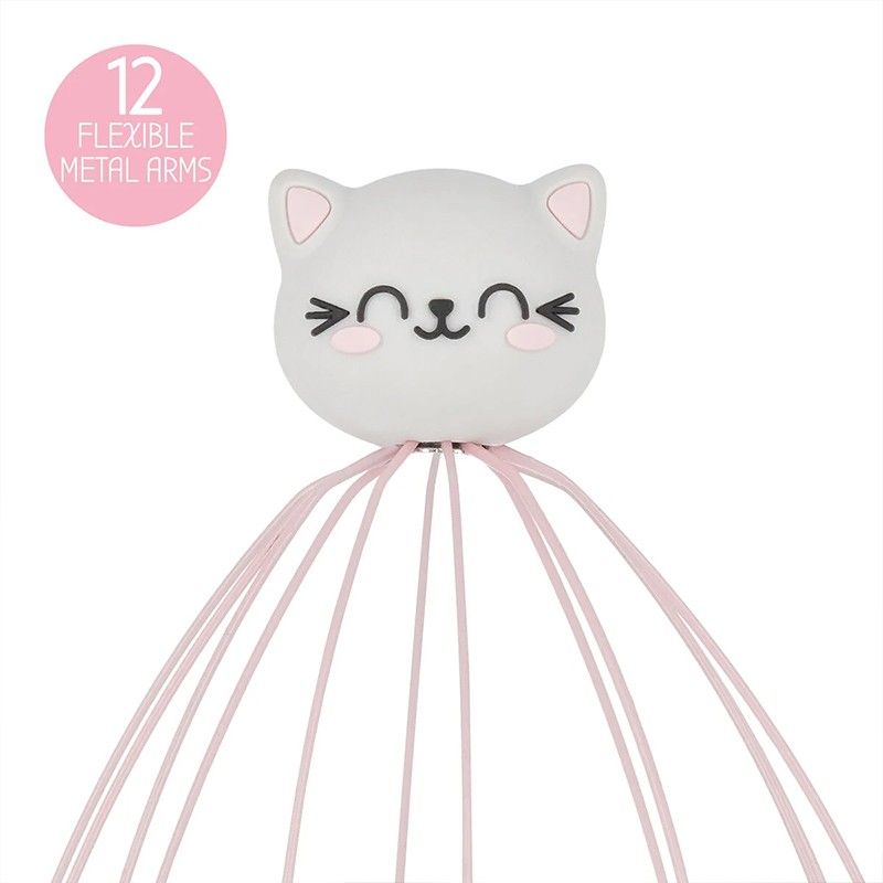 Denna urgulliga huvudkliare, med 12 st ben och handtag med kattmotiv, är en fantastisk källa till avslappning. Använd den på dig själv eller