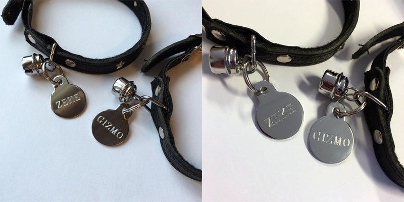 Vi graverar en text som du väljer, rekommenderat är kattens namn på ena sidan och ditt telefonnummer på den andra. Perfekt om din katt har kommit bort, någon hittat den och behöver komma i kontakt med dig som ägare. Går förstås lika bra att använda på kattselen som på katthalsbandet.