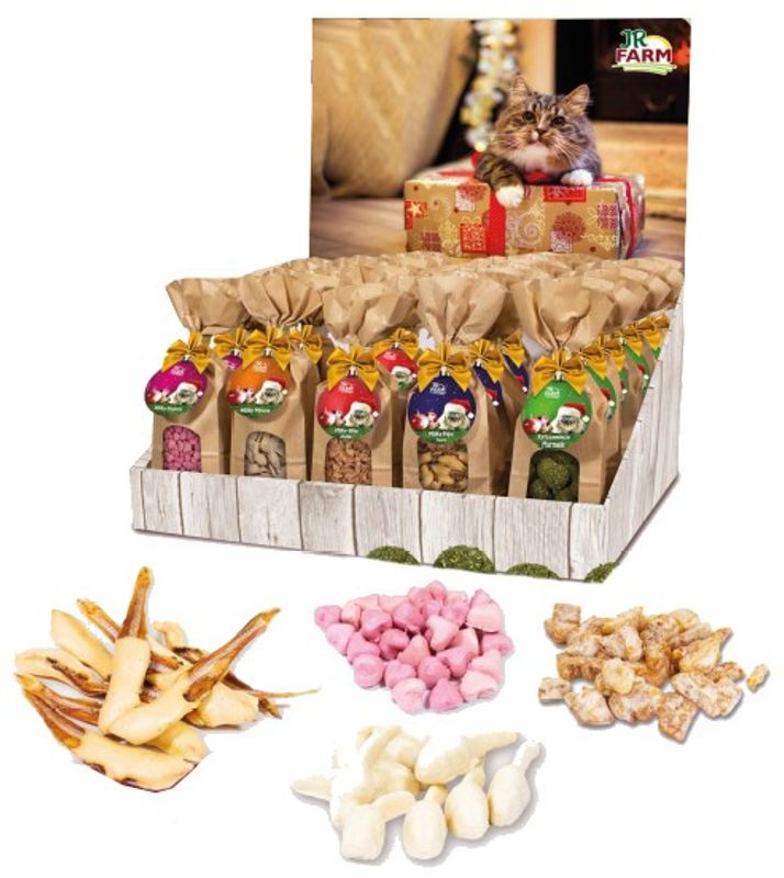 Fina juliga papperspåsar med kvalitetskattgodis från märket JR Farm i tyskland. 4 olika smaker att välja mellan. En helt perfekt liten present och julklapp till din vän som har katter.