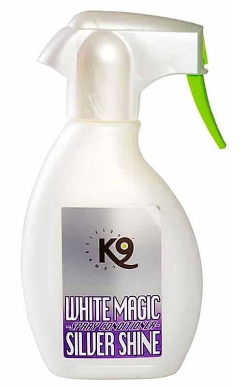 K9 Competition White Magic är en så kallad "leave in"-balsamspray, en keratinspray speciellt framtagen för vita och silvriga pälsar. White Magic har, precis som andra sprayer från K9, en kraftfull utredande och antistatisk effekt. Denna balsamspray ger en extremt vit, lättborstad päls med fantastisk glans.