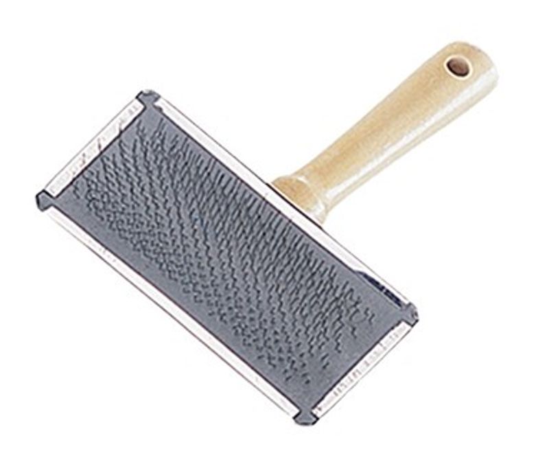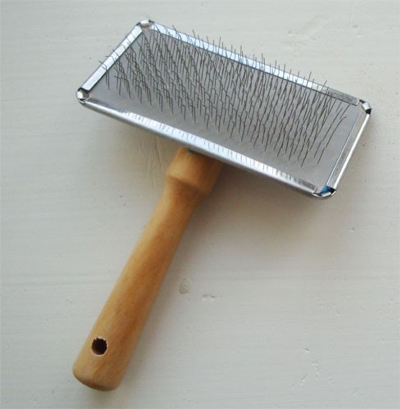 Mjuk karda med trähandtag som tar bort fälld och glanslös päls. Kan användas på både kort- och långhåriga katter med bra resultat. Trähandtaget ligger bra i handen vid borstning, riktigt smidig att använda.