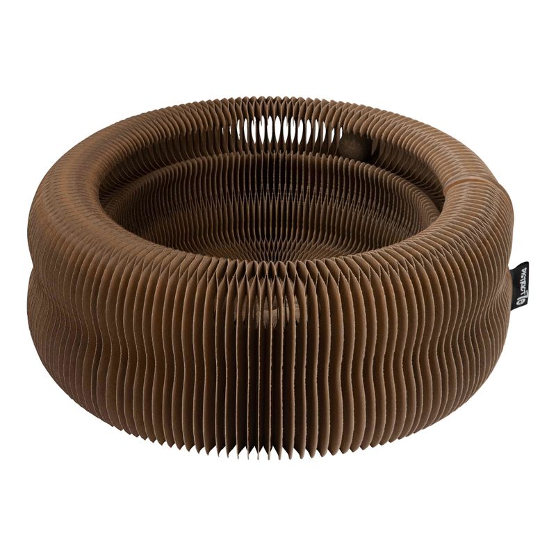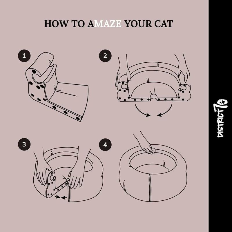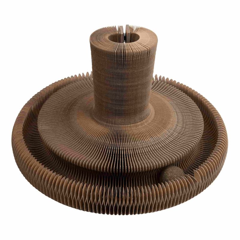 Kattbädd MAZE är en 3-i-1 vikbar kattsäng tillverkad i kartong som kan fungera som klösleksak, loungeplats och klösmöbel. Bollen som ingår består av kattmynta, vilket främjar din katts naturliga jaktbeteende och skapar en fin aktivitetsleksak.