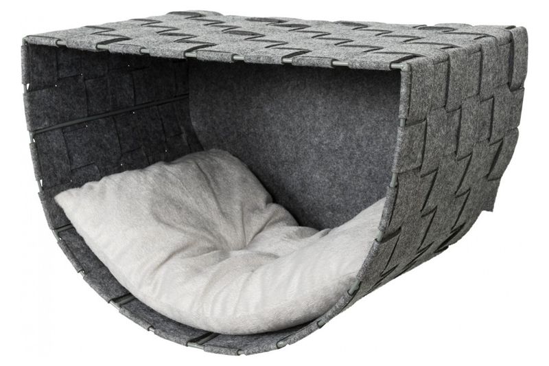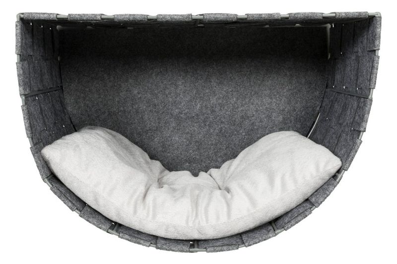 Lennie väggmonterad kattsäng är en superfin hylla/säng i flätad filtad polyester på en stabil metallram. Man kan hänga kattsängen med den rundade delen neråt och får då även en avlastningsyta upptill, eller så svänger man den raka delen neråt om katten uppskattar mer att ligga på en rak yta.