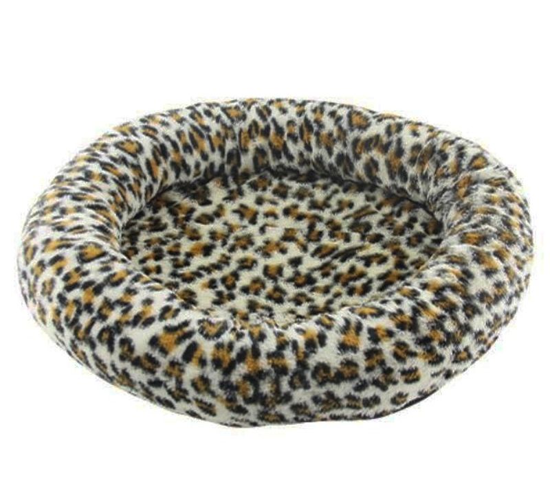 Klassisk rund kattsäng i leopard-mönster. Coolaste bädden till den coolaste katten!