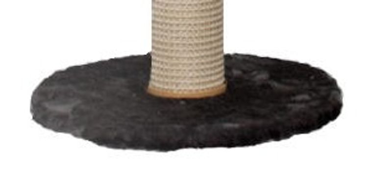 Rund bottenplatta med grått plyschtyg och förborrat hål i mitten. Lös reservdel som passar till alla klösträd från märket Kattens No.1
