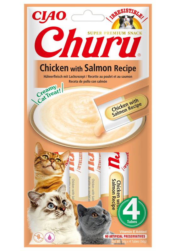 Churu Creamy-serien är tillverkade av gårdsuppfödd kyckling och odlad lax. Churu tillverkas med ingredienser av livsmedelsgodkänd råvara. Churu Creamy finns i flera läckra smaker om din katt gillar ombyte!