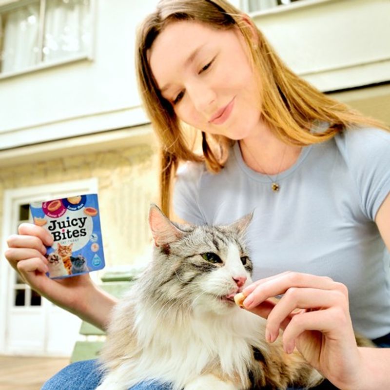 Juicy Bites are irresistibly moist, bite-sized soft tuna and chicken treats seasoned with natural flavors.