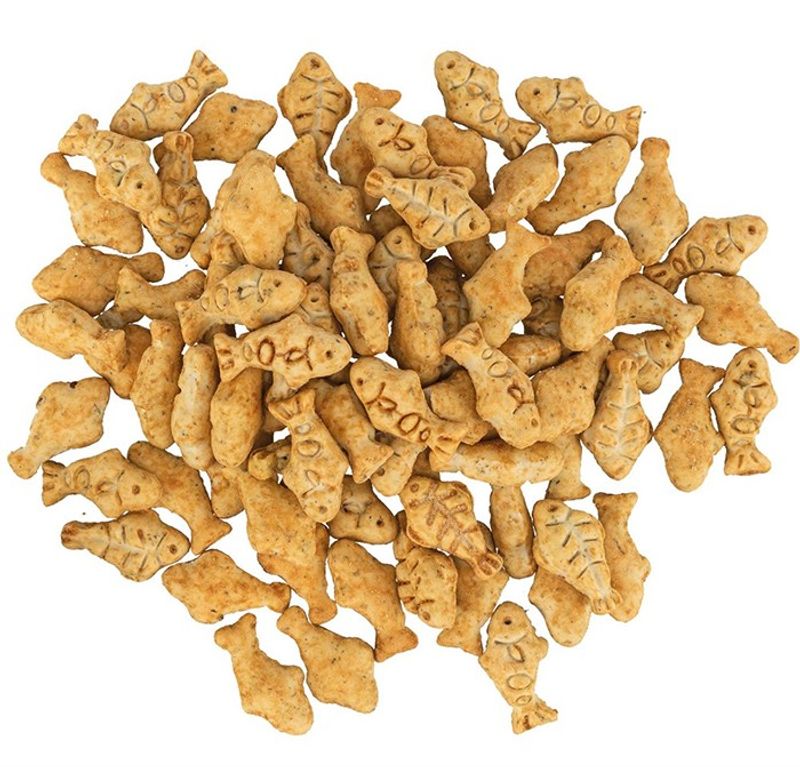 Kattgodiset har formen av små fiskar.