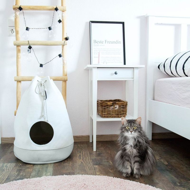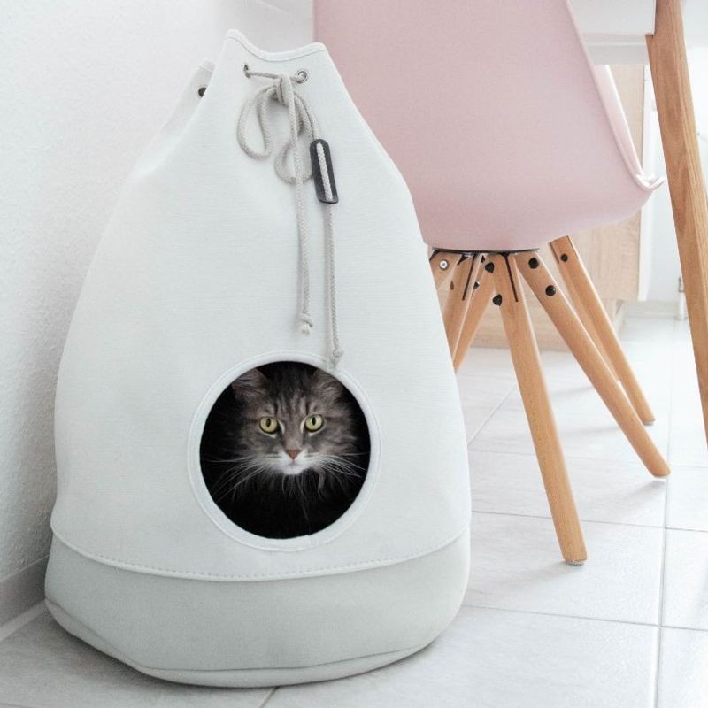 Casa från märket District 70 är en fin kattgömma där din katt att krypa in i för en tupplur. Casa är baserad på designen av en väska, som stängs upptill med ett band. Katten glider in genom den främre öppningen och myser sedan på den mjuka kudden, innerkudden kan tas ut och tvättas för hand.