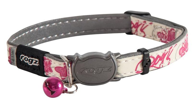 Smart självlysande katthalsband för bättre synlighet i mörker och skymning utomhus, med fina rosa detaljer. Katthalsbandet är utrustad med det kombinerade "SafeLoc" och "Break Away Safety" spännet som är speciellt för katthalsbanden som märket Rogz tillverkar.