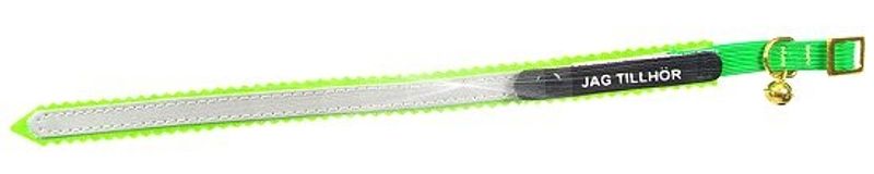 Katthalsband i snygga färger med en reflexremsa på utsidan så att katten syns ordentligt på sina nattliga utflykter. Under den svarta fliken märkt Jag Tillhör, finns plats att skriva mattes eller husses telefonnummer så att dessa lätt kan kontaktas ifall kisse skulle komma vilse.