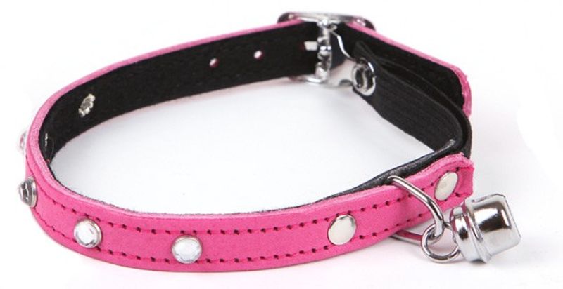 Riktigt fint läderhalsband i cerise färg med dekorstenar. Fint bling-bling till din katt!