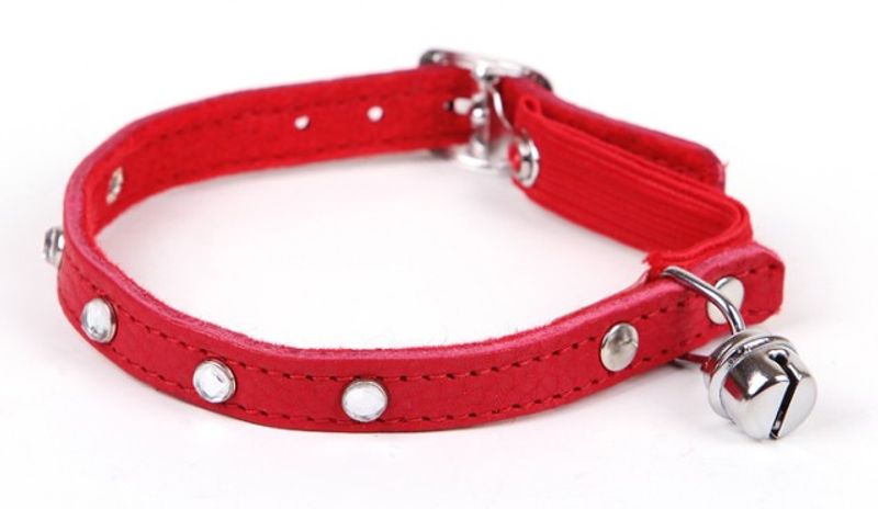 Snyggt katthalsband i klarröd färg med fina dekorstenar!