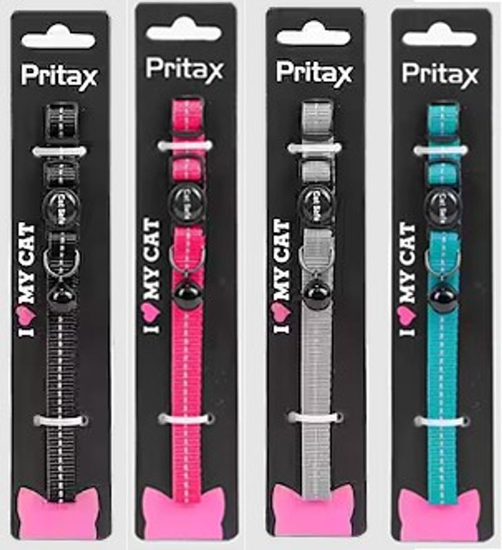 Katthalsband Maja från Pritax är ett slitstarkt nylonhalsband för katt, med en reflexsöm runt hela halsbandet så att din katt syns bättre i mörkret.