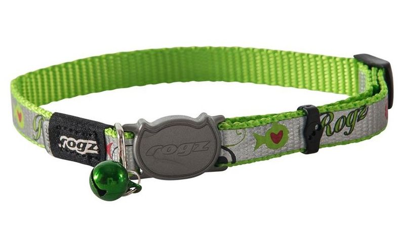 Katthalsbandet är utrustad med det kombinerade "SafeLoc" och "Break Away Safety" spännet som är speciellt för katthalsbanden som märket Rogz tillverkar.