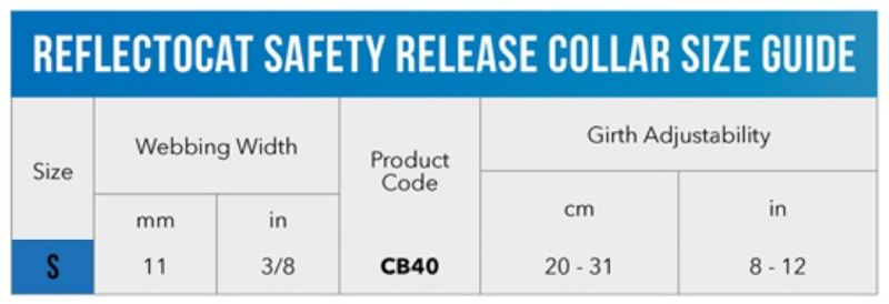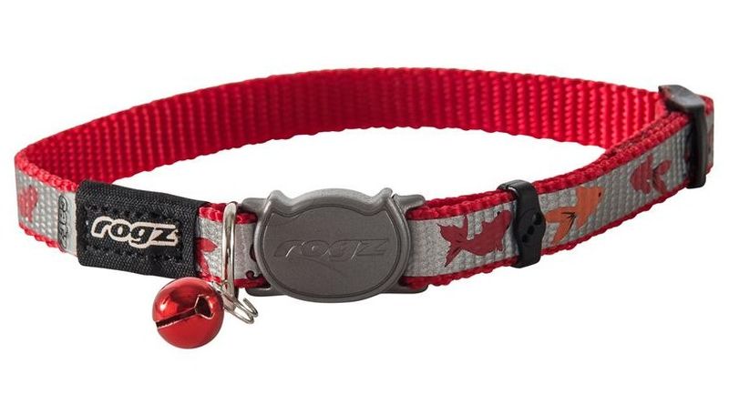 Katthalsbandet är utrustad med det kombinerade "SafeLoc" och "Break Away Safety" spännet som är speciellt för katthalsbanden som märket Rogz tillverkar.